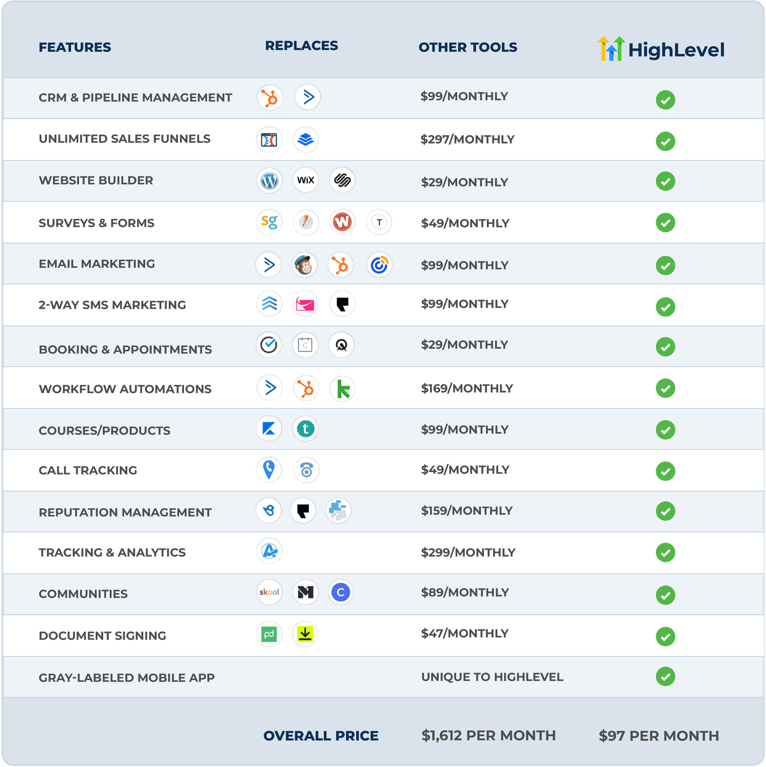 It combines CRM, funnels, email & SMS automation, and client management tools — all in one place.
